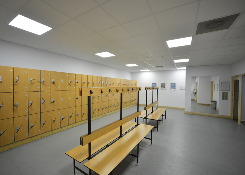 Located in the main changing village, our accessible changing room is 29 meters from the main entrance. The door is 88cm wide, opens outwards, and is secured with a locking handle.