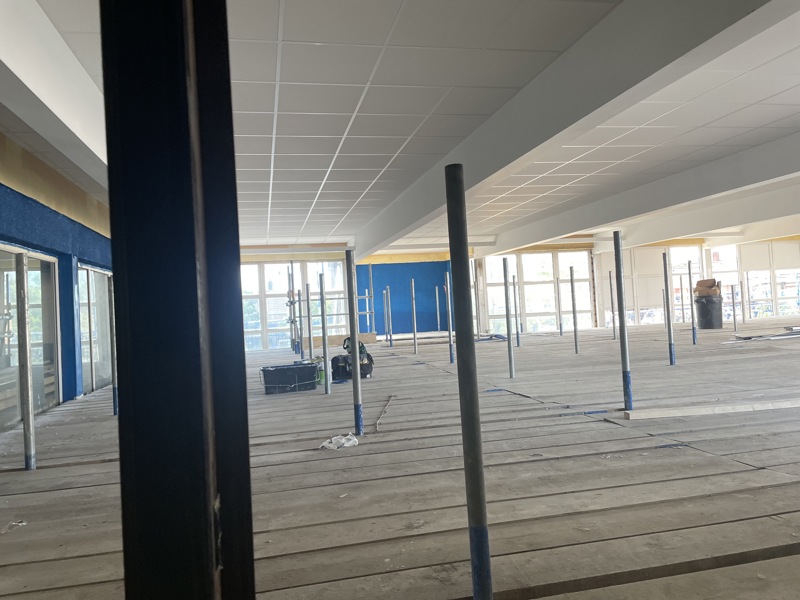 “This month has seen work on the Pool Hall roof completed along with the Pool Hall ceiling and the glazing of the front elevation in that area. The team have also completed the repairs to the internal walls.