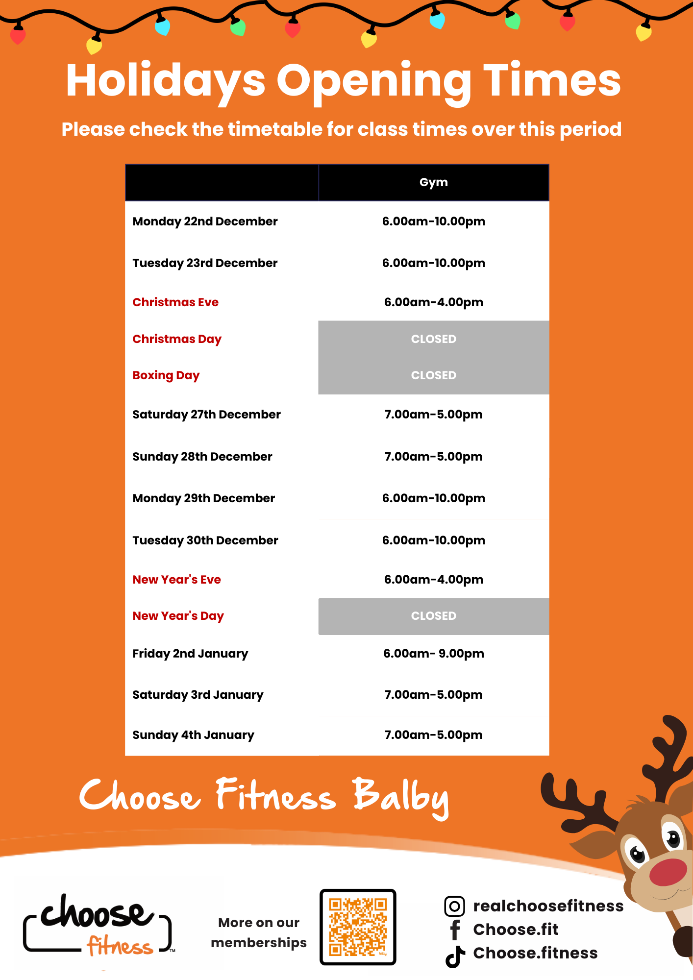 Open today 7am - 7pm (5pm Gym)